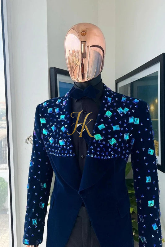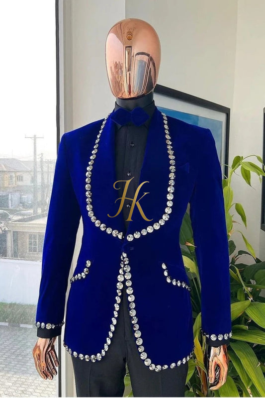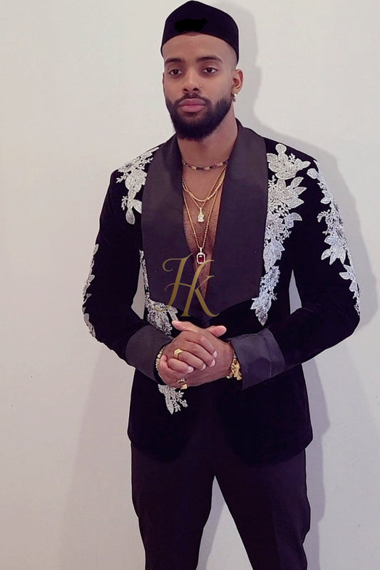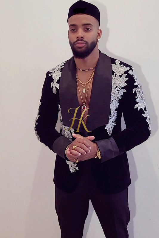 Handmade Custom velvet blazer Men's Suit 2 pieces with Sheer Velvet Lapel - Elevate Formal Style | KAYIB