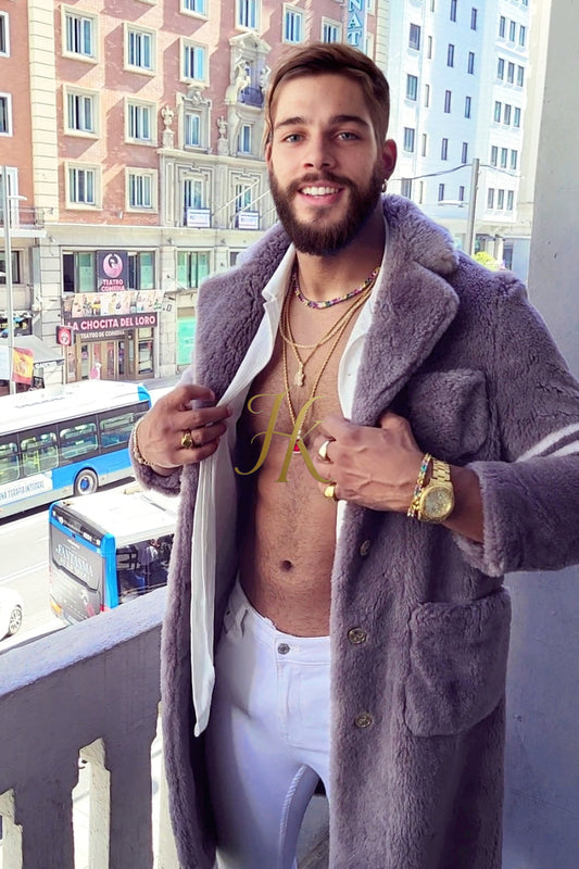 Handmade Coats Winter Style: Fuzzy Fleece Lapel Long Cardigan Coat for Men