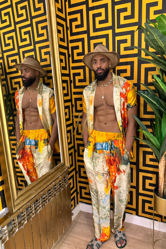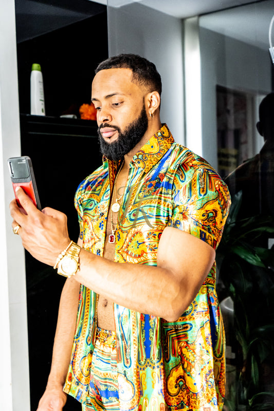 Gold Luxurious Barocco Print Set - The Ultimate Summer Silk Outfit for Men