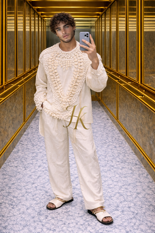 Hand-Embroidered Shell Couture Set for Men | KAYIB