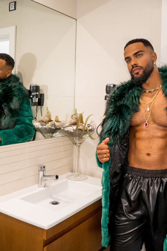 Fashion Winter Men's Rex Rabbit Fur Coat with Super Large Raccoon Collar - Premium Fashion Outerwear