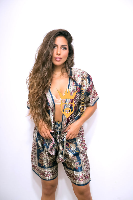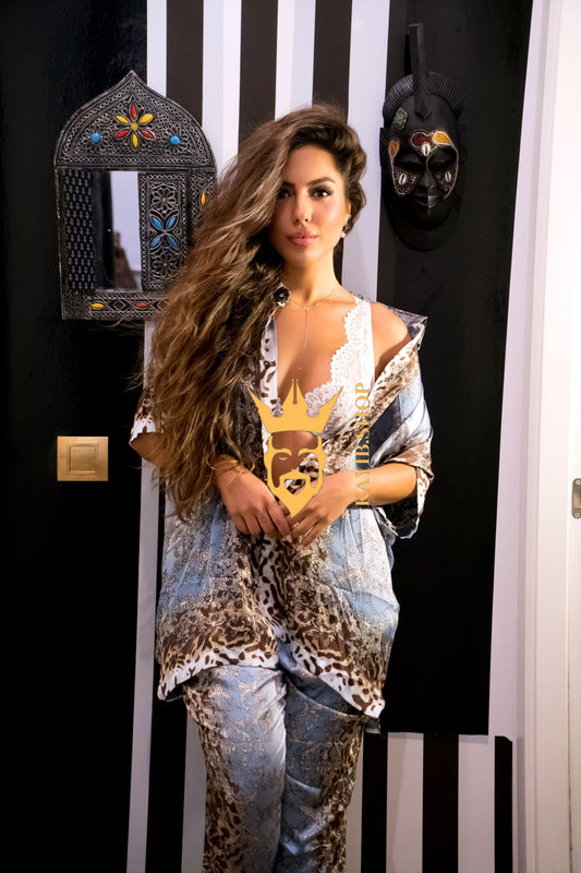 Celestial Lace Elegance Set – Women's Two-Piece (Shirt & Pants)