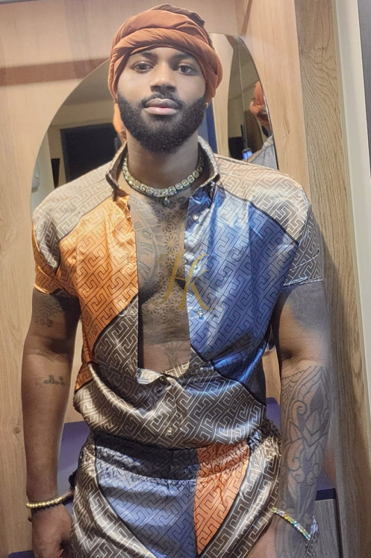Fashion Luxury Boho Silk Shirt Set - Festival Outfit, Handmade Men's Fashion