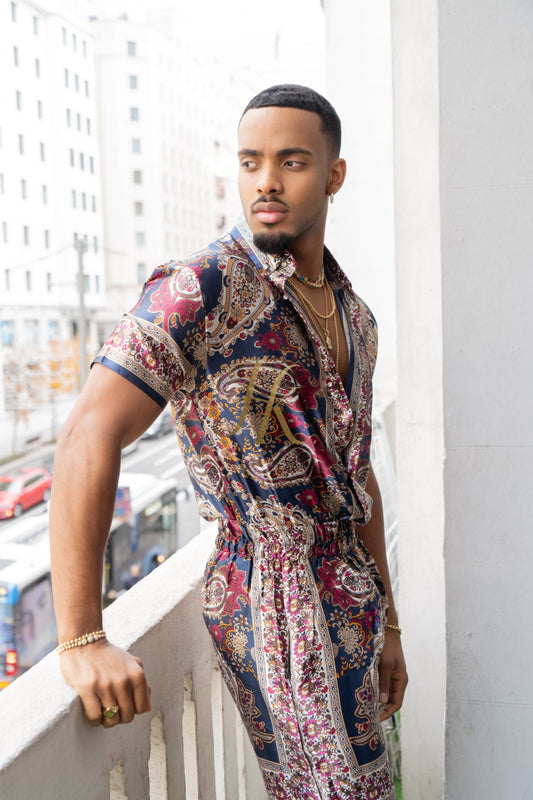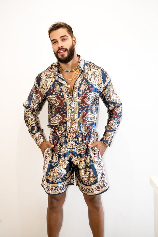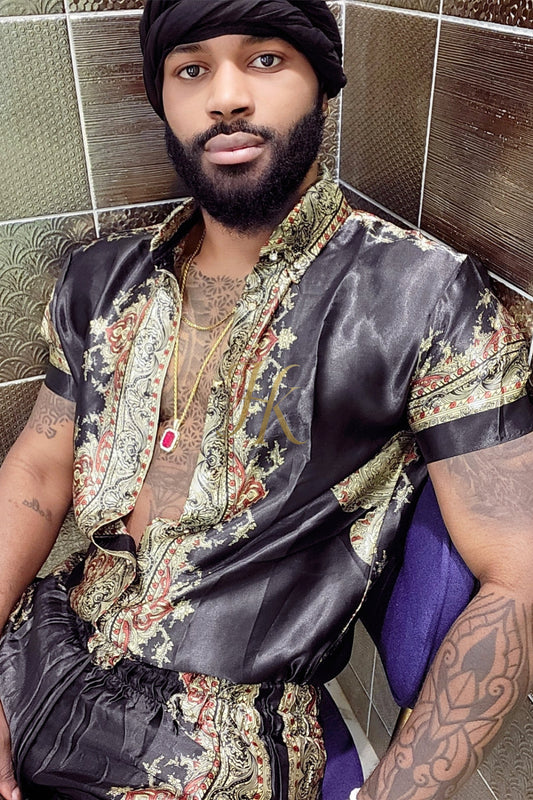 Men's apparel : Silk shirt Set - Elevate Your Style with Le Barroco Print - Perfect for Couples and Special Occasions
