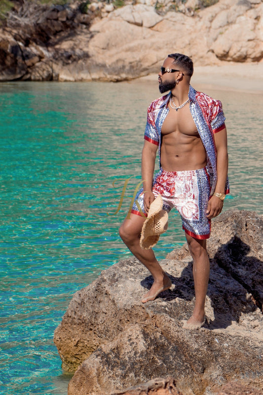 Beachwear Luxury Silk Shirt Set - Handmade Men's Fashion