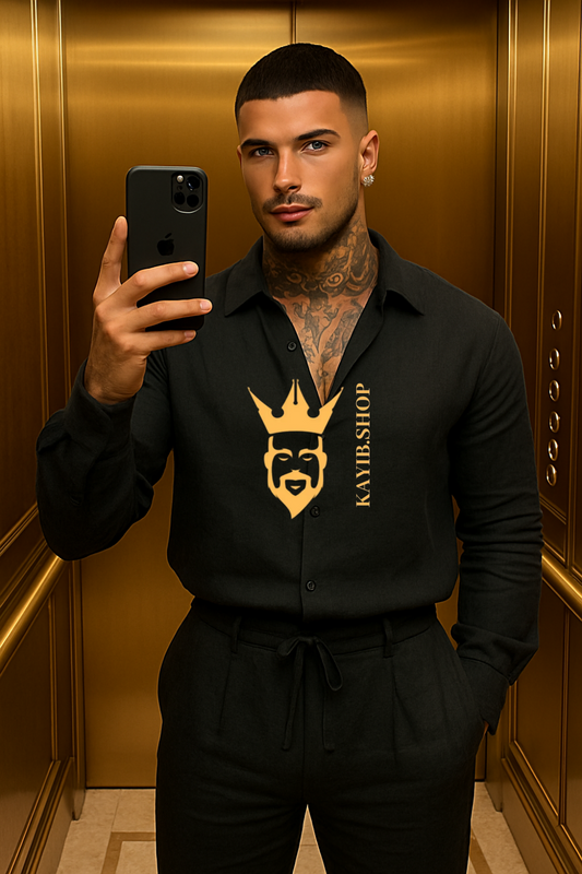 Luxury Black Rubia Cotton Men’s Set – Long Sleeve Shirt & Pants