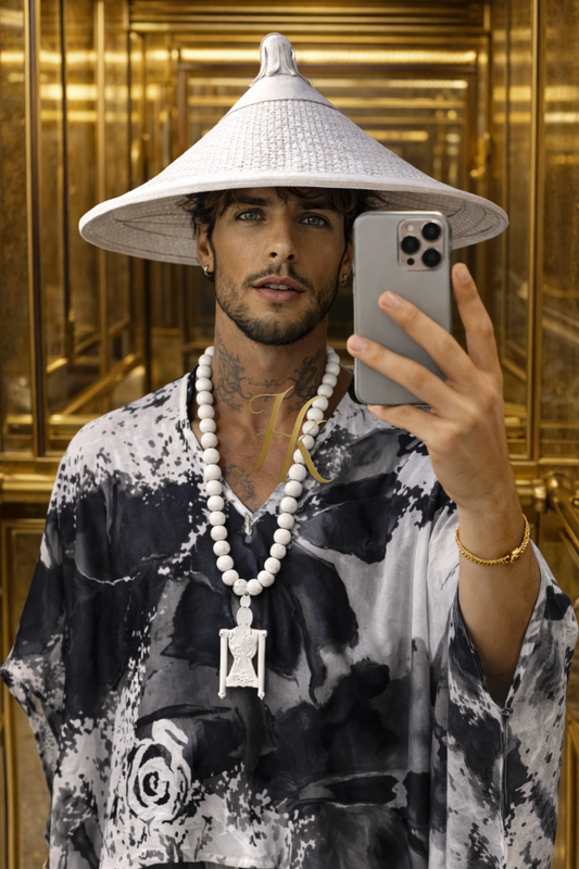 Men’s Luxury Silk Lace Set – French Tulle with Handmade Stones & Burnt-Out Design