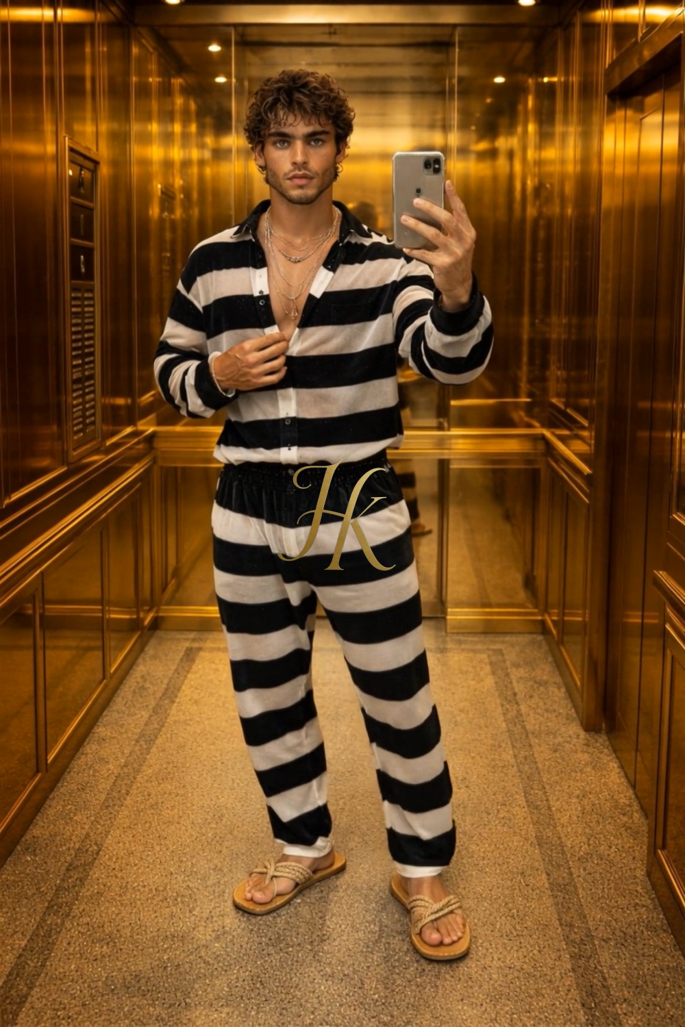 Step into refined luxury with this men’s cheongsam-inspired two-piece set, crafted from an exceptional blend of genuine striped velvet and premium mulberry silk. Designed to honor tradition while embracing contemporary elegance, this ensemble delivers a bold yet sophisticated presence.
