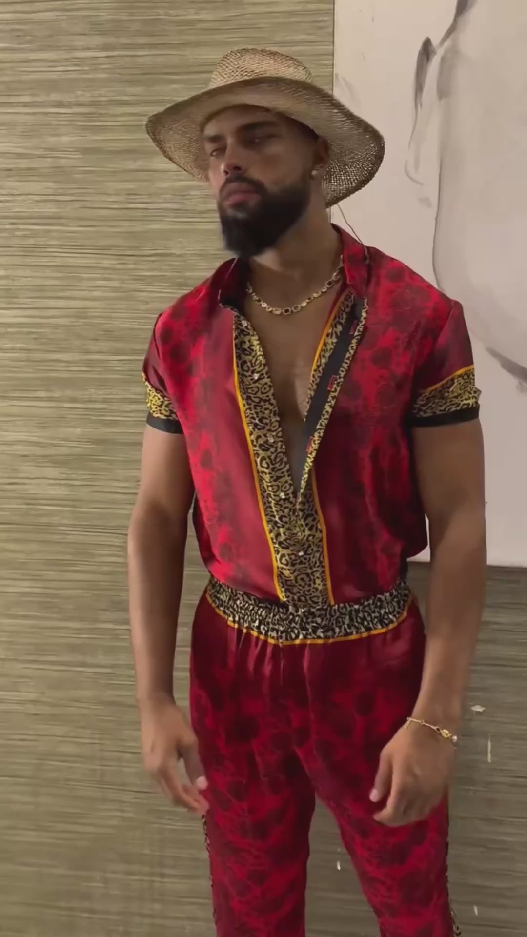 Step up your fashion game with our Men's Luxury Silk Set. This matching silk shirt and pant outfit is designed for comfort and elegance, making it ideal for summer beachwear, rave parties, and sophisticated outings.