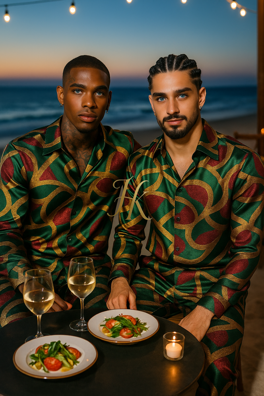 Exude timeless sophistication with this luxury men’s two-piece outfit set, featuring a long sleeve shirt and matching trousers crafted from high-quality tulle lace with jacquard organza embroidery and guipure detailing. Designed for men who value artistry and refinement, this set blends traditional craftsmanship with a modern, fashion-forward aesthetic.