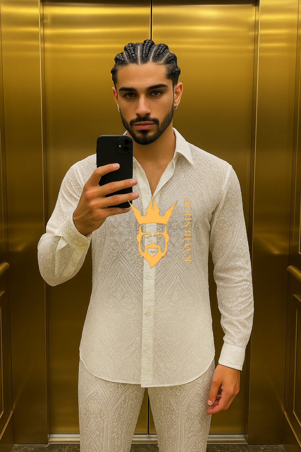 Experience true sophistication with this luxury men’s outfit set, crafted from 2025 high-quality French lace fabric richly adorned with sequins and hand-applied beads. Designed for men with a taste for exclusivity, this two-piece ensemble features a refined lace shirt and matching trousers, blending tradition, craftsmanship, and modern elegance.