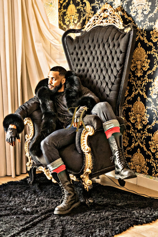 Luxury Men’s Black Fox Fur Hooded Coat – Winter Warm Jacket Outerwear