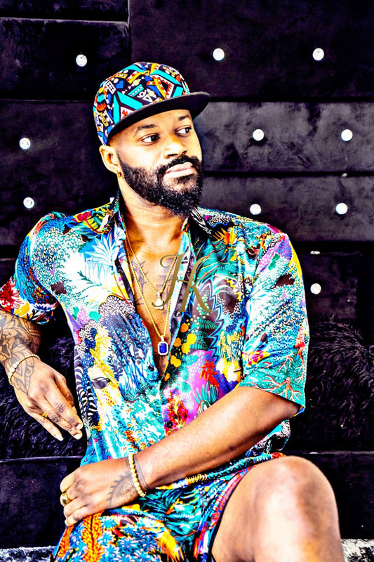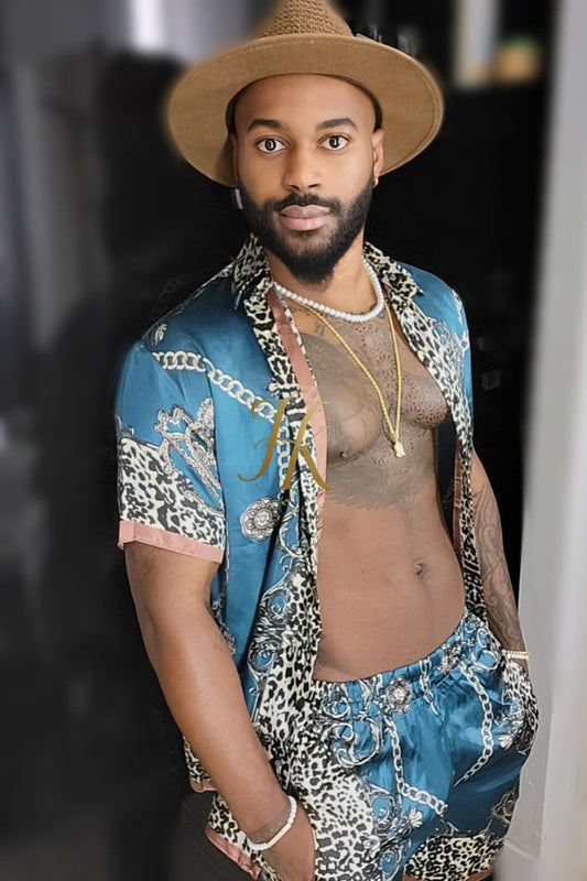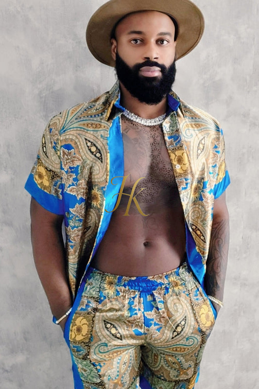 Conjunto de seda de lujo azul para hombre 2 piezas