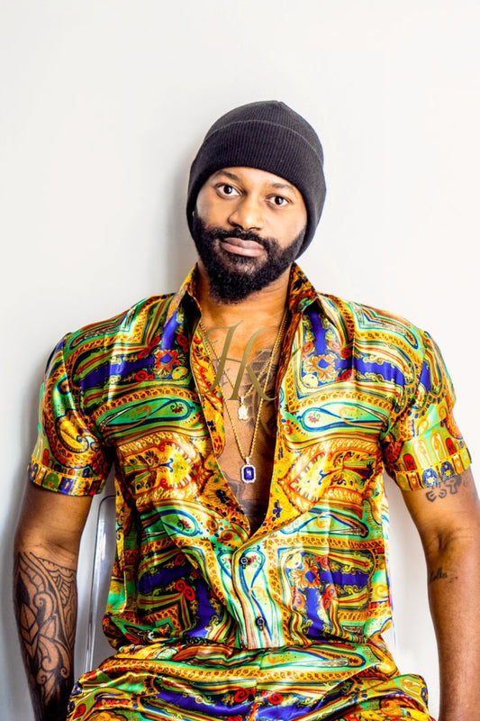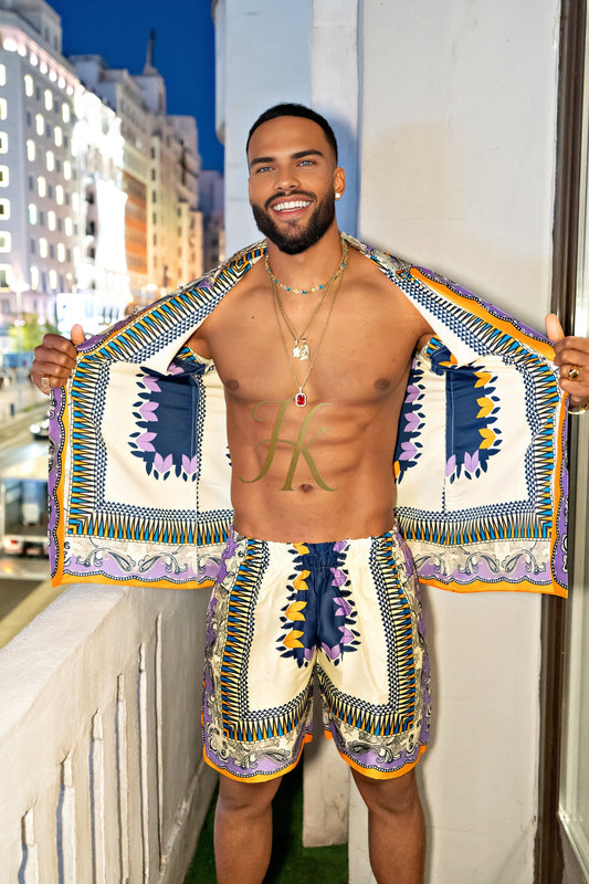 Conjunto de camisa y pantalones cortos de seda de lujo para hombre, 2 piezas