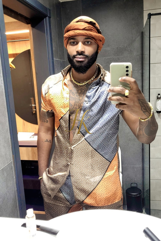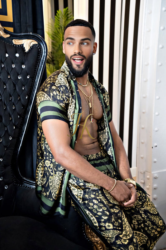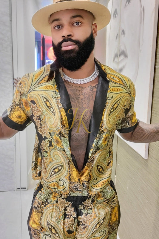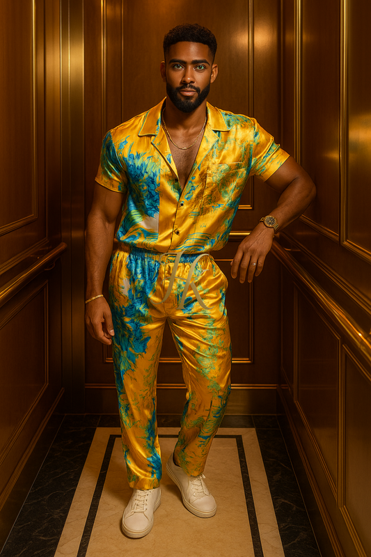 Conjunto de seda de verano para hombre de moda de lujo 2 piezas