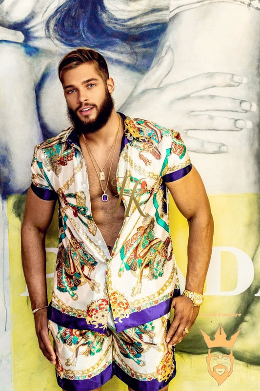 Camisa Camp Shirt+short de seda con estampado Barroco