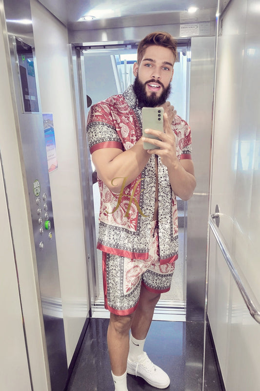 Conjunto de vestido de seda de lujo para hombre rojo