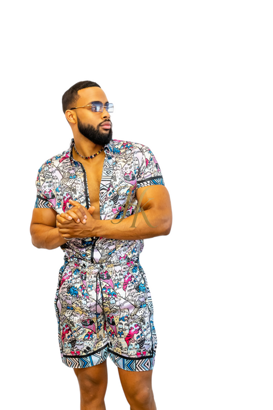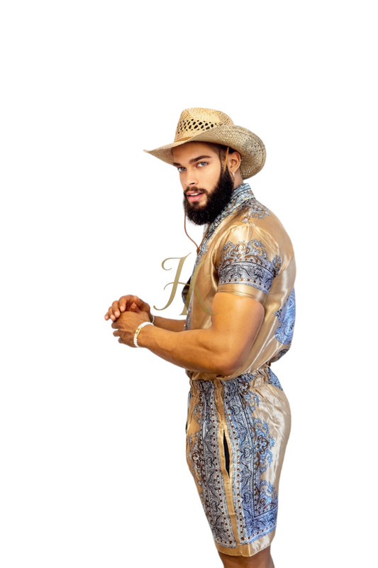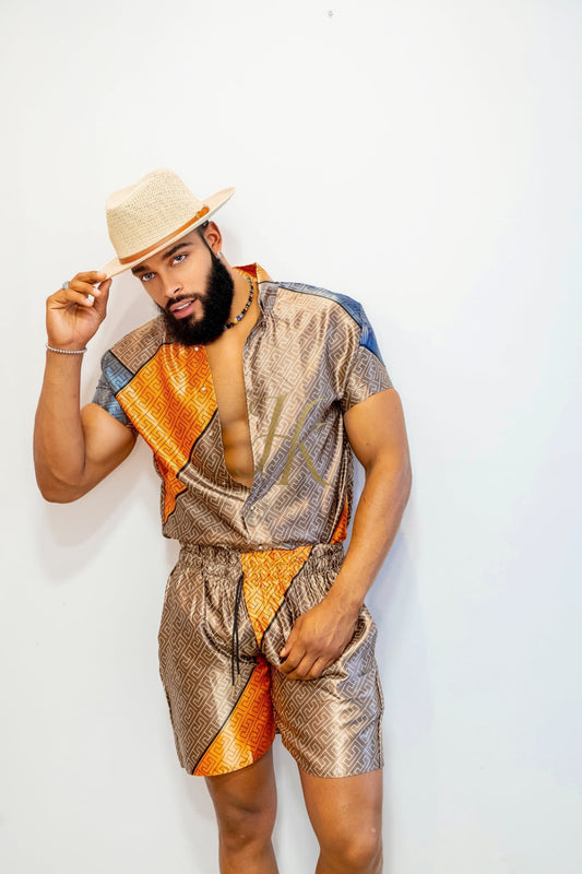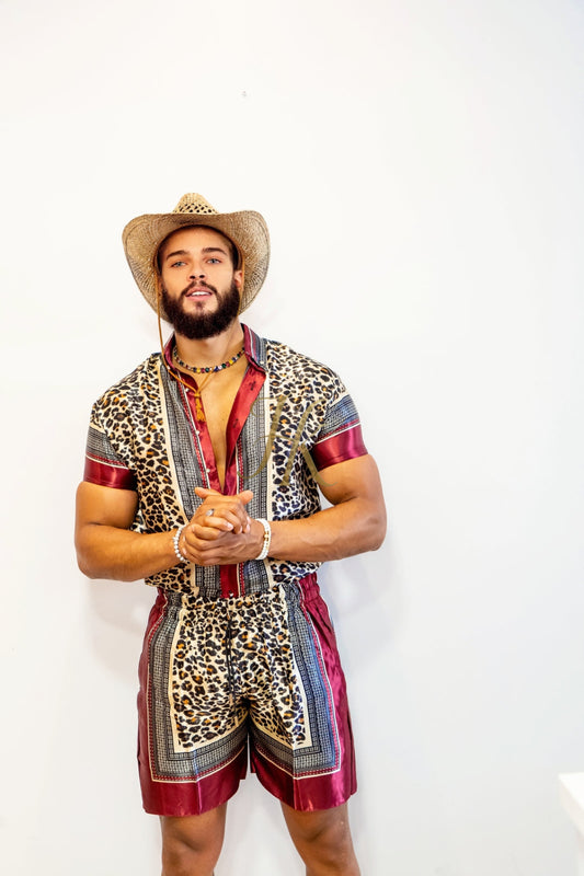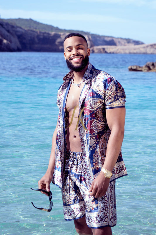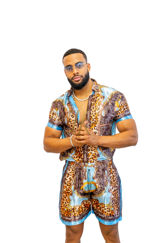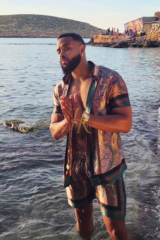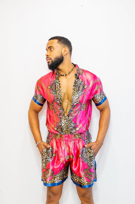 Conjunto de 2 piezas de camisa de seda/satén para hombre, pantalones cortos/pantalones cortos