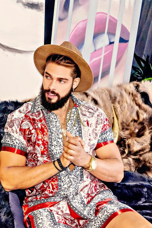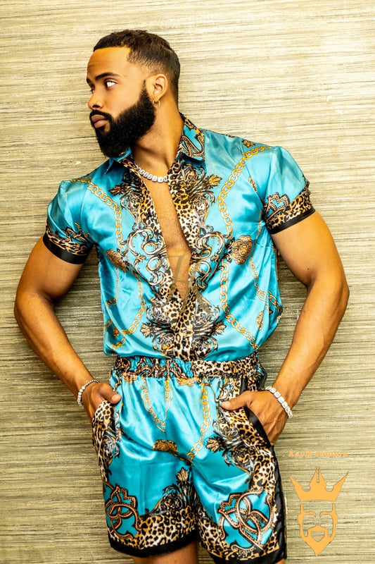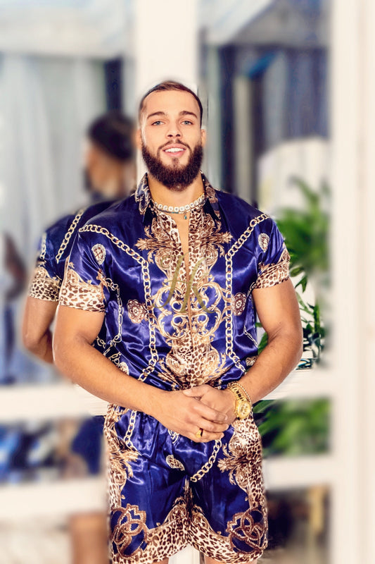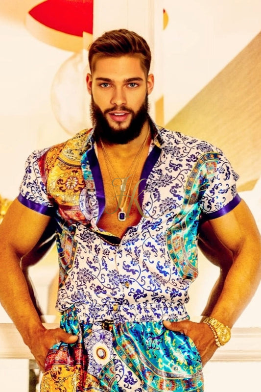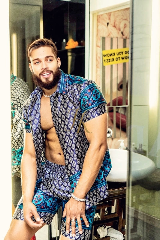 Camisa Camp Shirt+short de seda con estampado Barroco