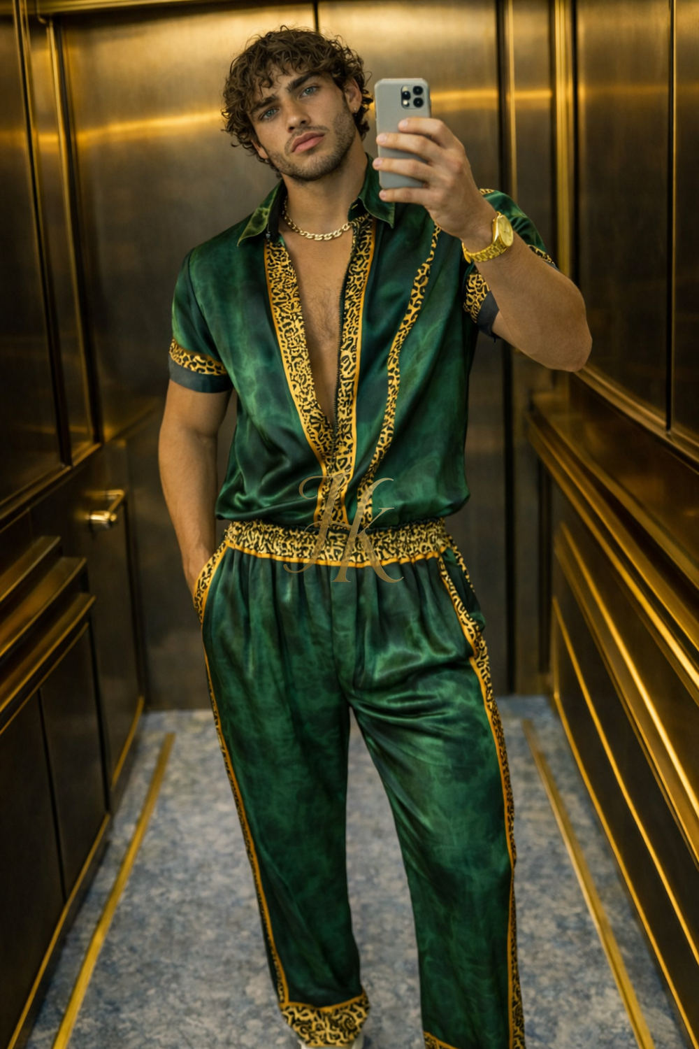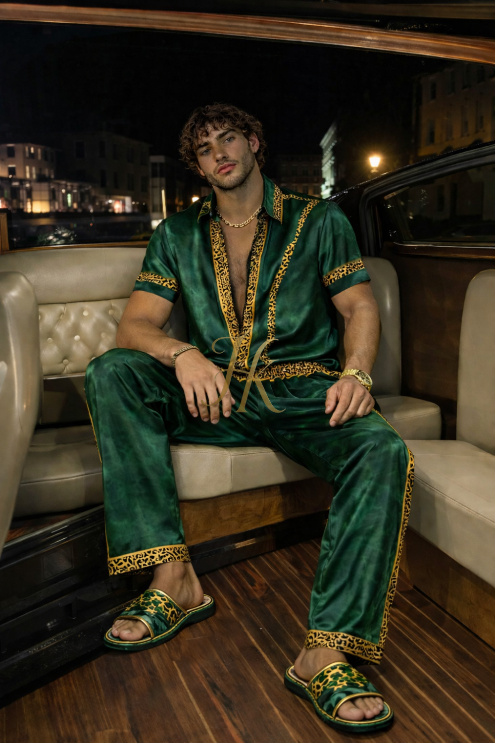 Este conjunto de seda pura presenta el estampado Barroco, una reinterpretación del icónico patrón Barroco de nuestra nueva colección en colores refrescantes y con un motivo de inspiración única en el centro.