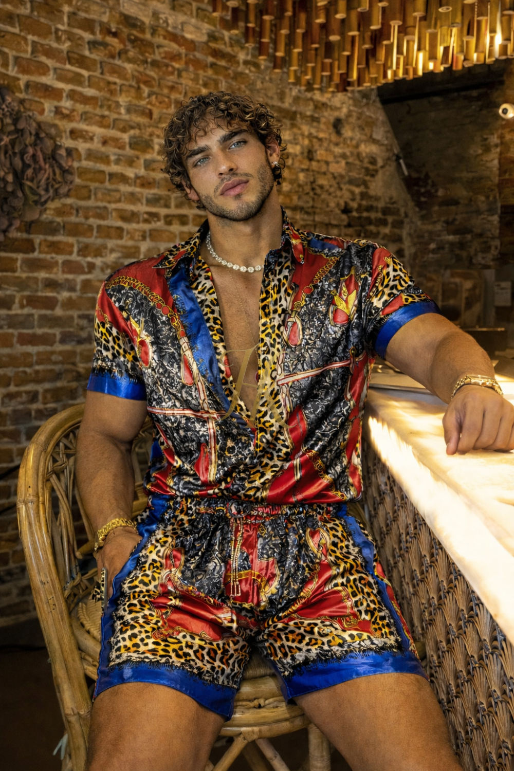 Conjunto de seda de verano para hombre de moda de lujo 2 piezas