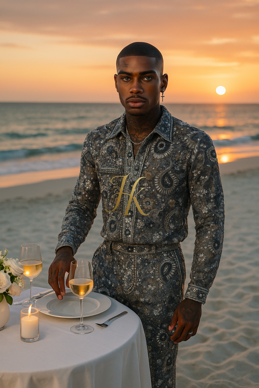 Este conjunto de 2 piezas en seda y raso está cosido a mano. si lo deseas puedes personalizar tu conjunto con tus propias medidas. Este servicio es totalmente gratuito. Para ello, después de tu pedido recibirás un email de confirmación, solo tienes que contestar a este email enviándonos tus medidas. De lo contrario, puede consultar nuestra tabla de medidas.