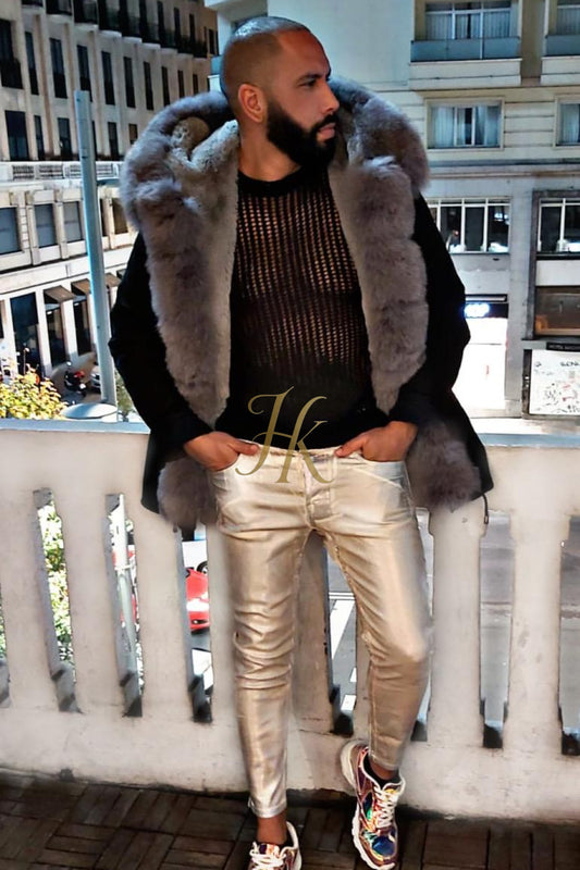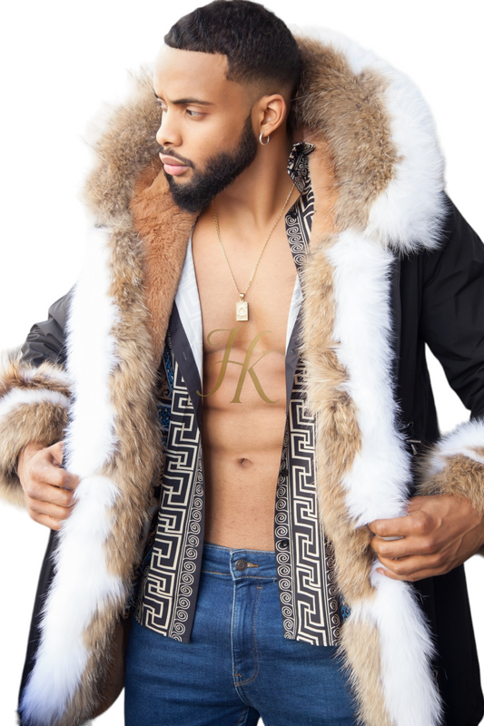 Classic 4-in-1 Men's Fur Parka - Stay Warm and Look Daring in the Winter Months - Handmade with Cut Crystal Materials