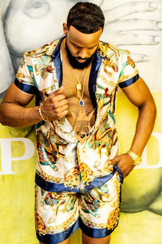 Barocco Print Set - The Ultimate Summer Silk Outfit for Men - Tailored Fit and Personalized Measurements Included