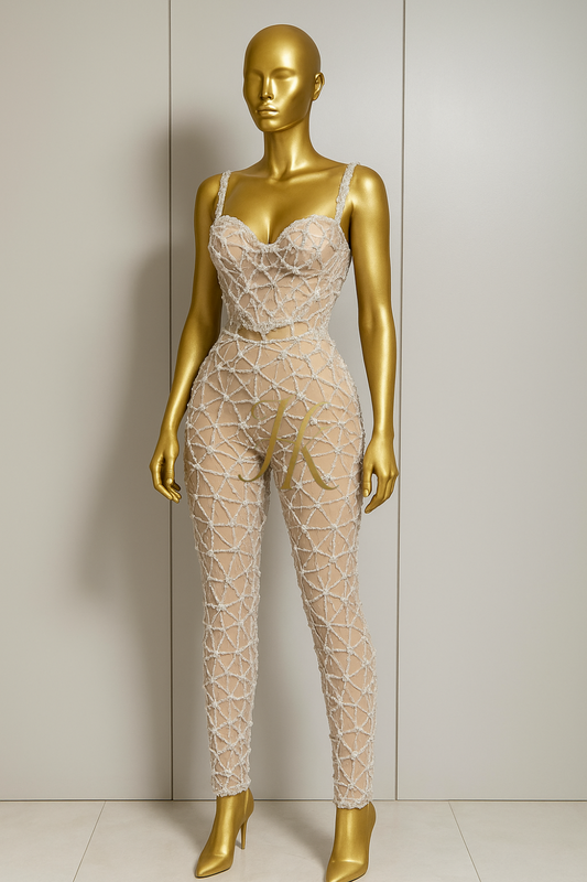 Sexy Sparkly Diamond Lace Two-Piece Set – Halter Top & Long Pants for Party, Birthday, or Stage Performance