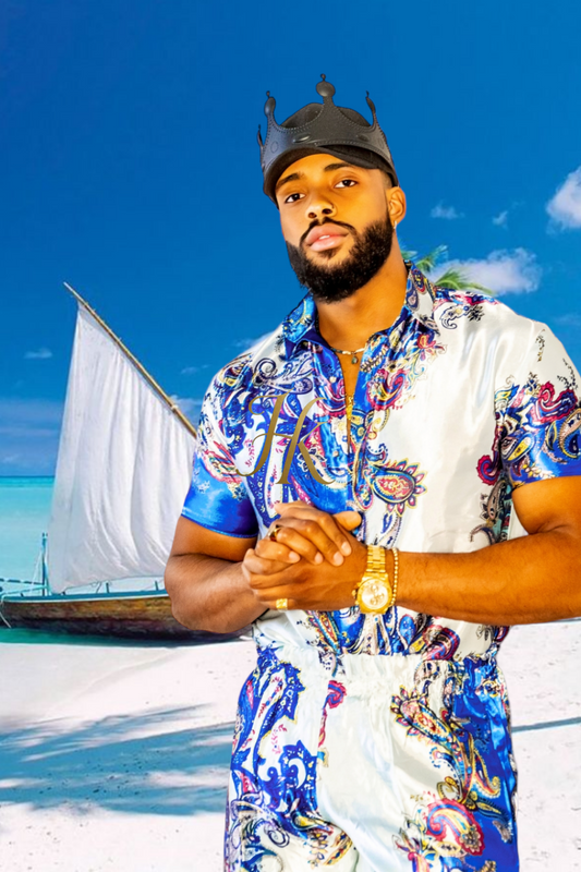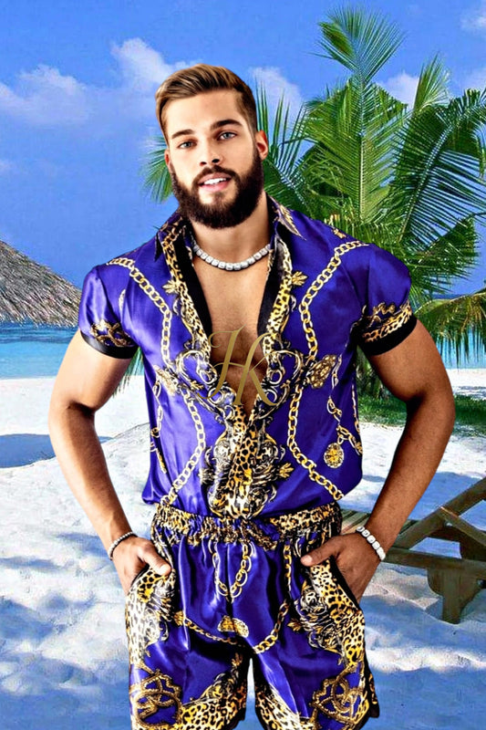 Silk Baroque Outfit Set - Stay Cool in Style with our Men's Short Sleeve Floral Shirt & Beach Shorts Combo - Perfect for the Ultimate Summer Look!