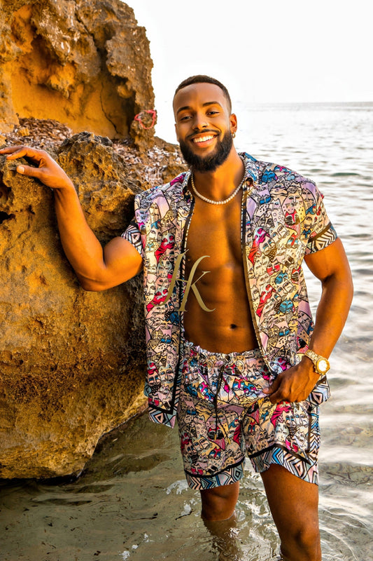 Silk Men's Summer Beachwear Set - Stand Out in Style with Luxurious Baroque-Inspired Design and Ultimate Comfort