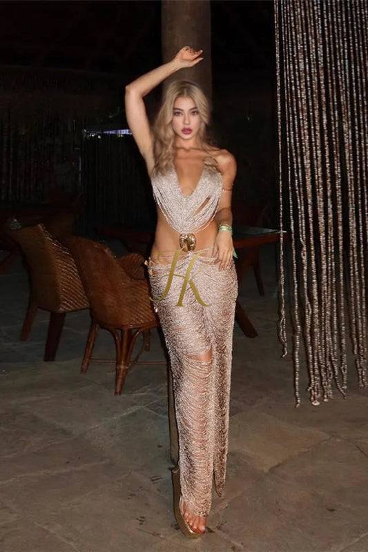 Sparkle and Shine: New 2024 Women's Glitter Sequin Party Dress with Tassel Detailing - Elegant and Slim-Fitting Sundress
