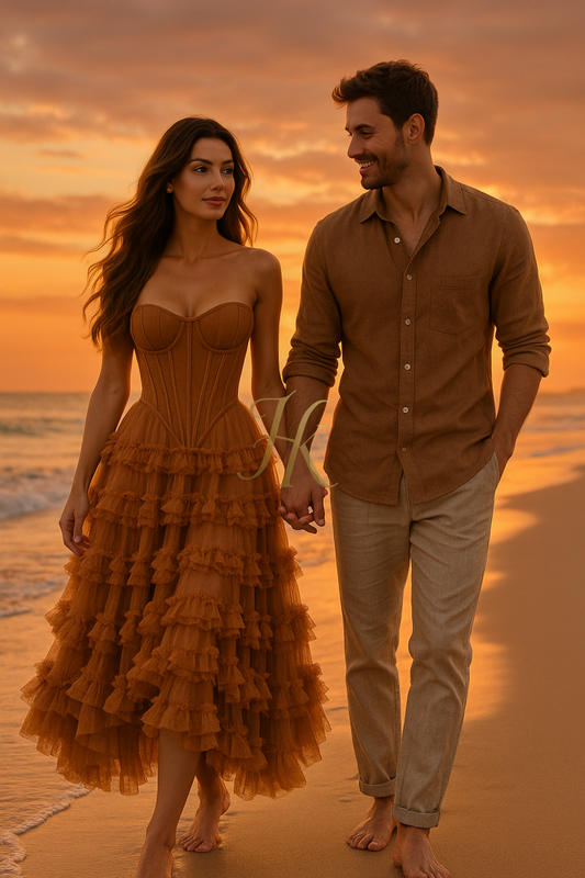 ✨ Velour Nights – Embroidered Mesh Shirt in Champagne Gold