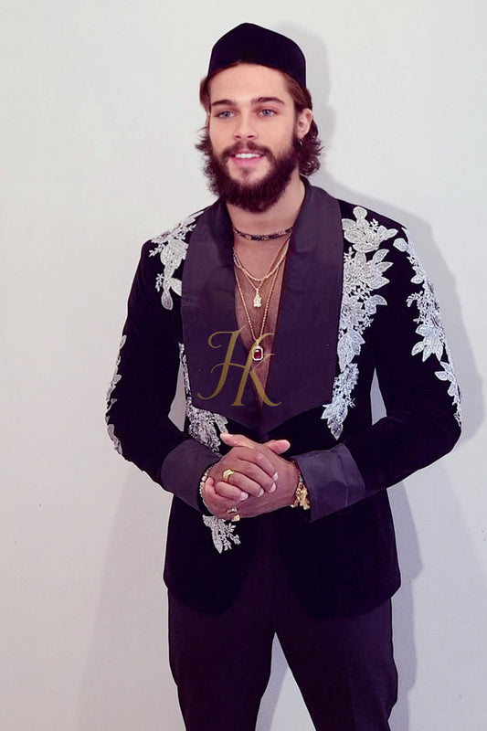 Best Handmade Custom velvet blazer Men's Suit with Sheer Velvet Lapel - Elevate Formal Style | KAYIB