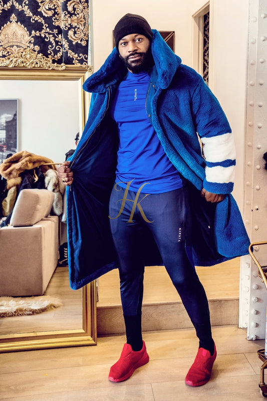 Blue and White Rabbit Fur Car Coat - Stay Warm and Stylish this Fall - Genuine Softness Guaranteed