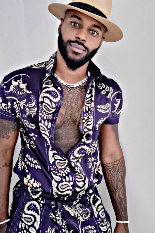 Boho Silk Shirt Set - Festival Outfit, Handmade Men's Fashion