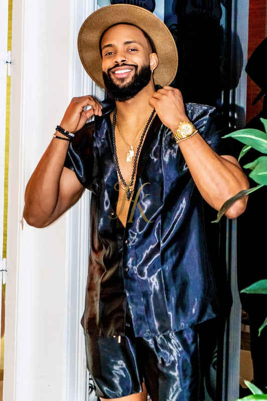 Black Men's Satin Silk Set - Elevate Your Style with Comfort and Elegance