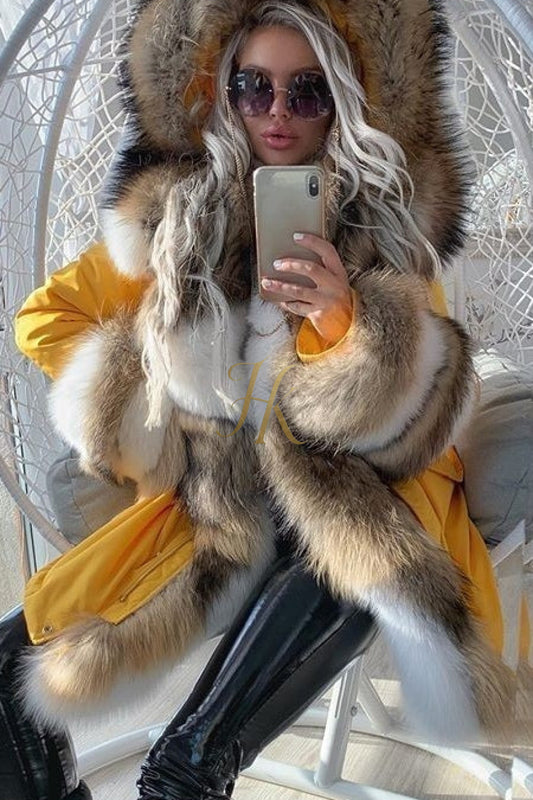 Orange rabbit Fur Car Coat - Elevate Your Fall Wardrobe with Cozy Sophistication