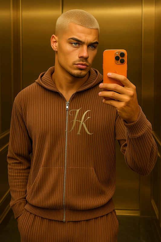 Men’s Pleated Hooded Set – Solid Color Two-Piece Outfit with Zipper Jacket & Harem Pants