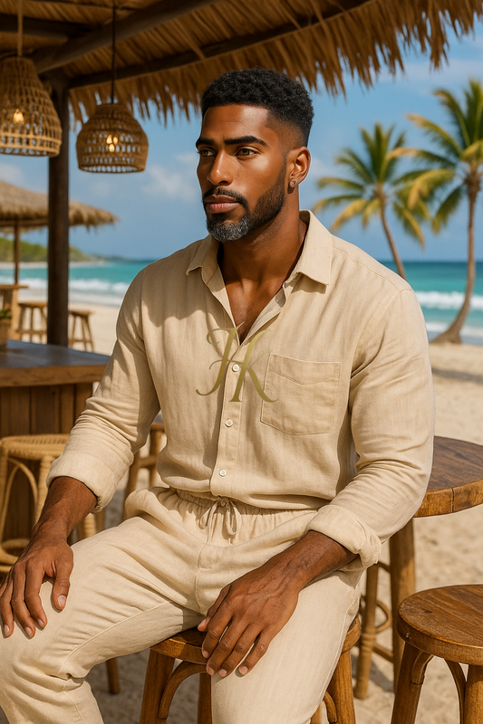 Vintage men’s Cotton Linen Two-Piece Suit – Plus Size Loose Fit Trousers & Skirt Set