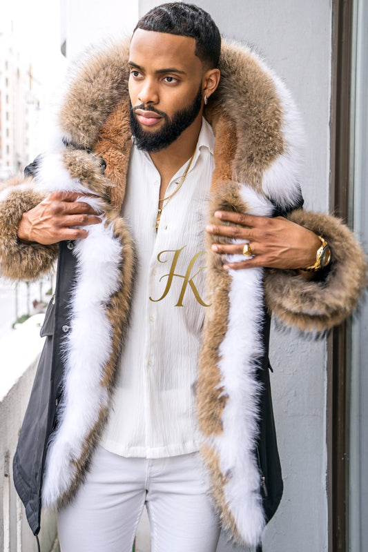 Classic 4-in-1 Men's Fur Parka - Stay Warm and Look Daring in the Winter Months - Handmade with Cut Crystal Materials