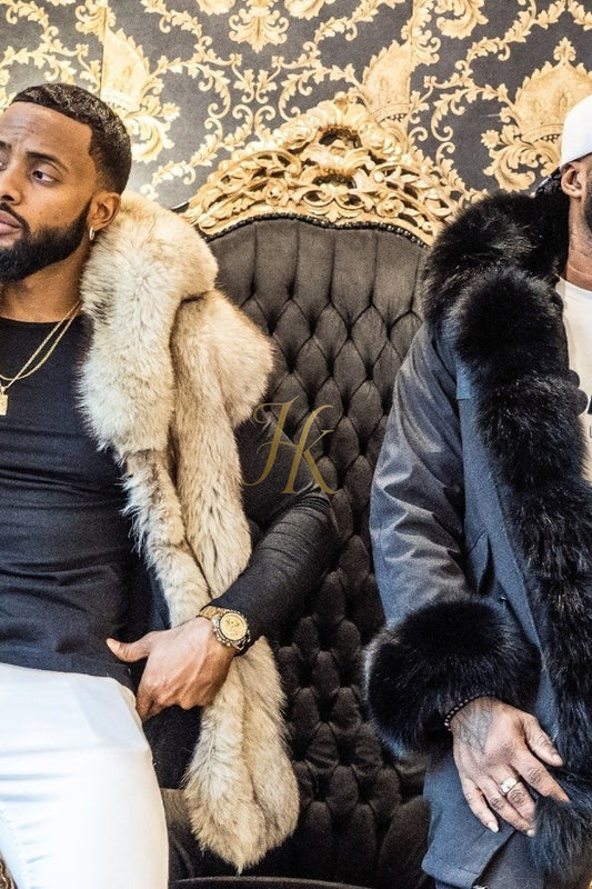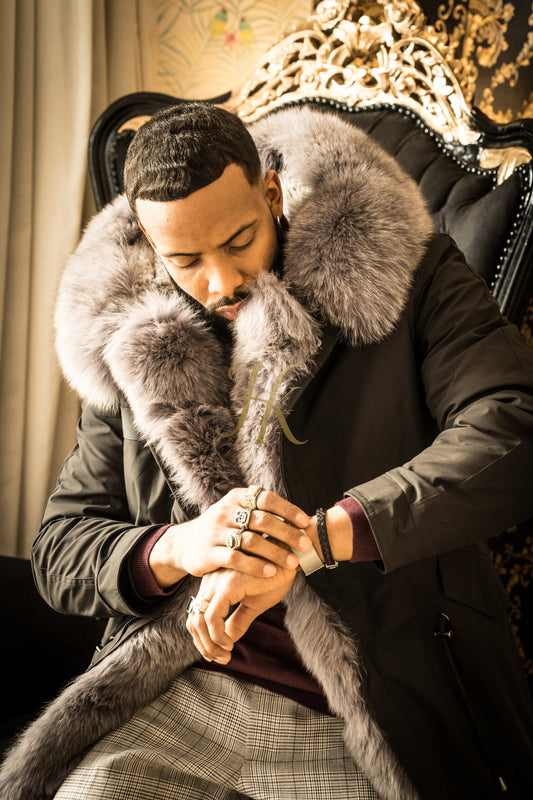 Luxury Mens Parka - 4-in-1 Jacket with Detachable Fur Parka - Handmade with Cut Crystal Materials for Unmatched Style and Comfort