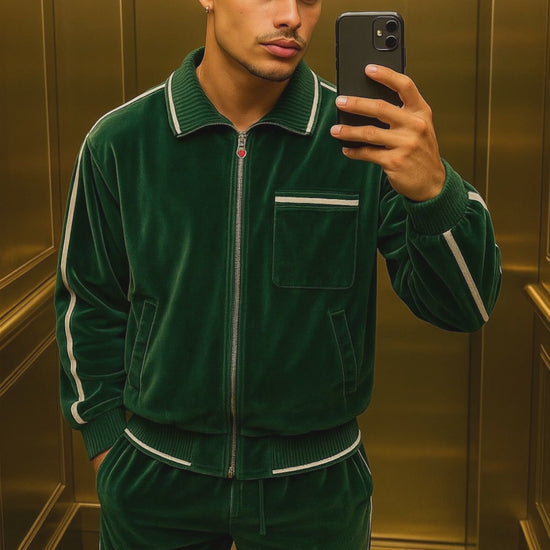 Men’s Luxury Tracksuit Set – CasinoBlank Paris Inspired Fleece Jacket & Track Pants