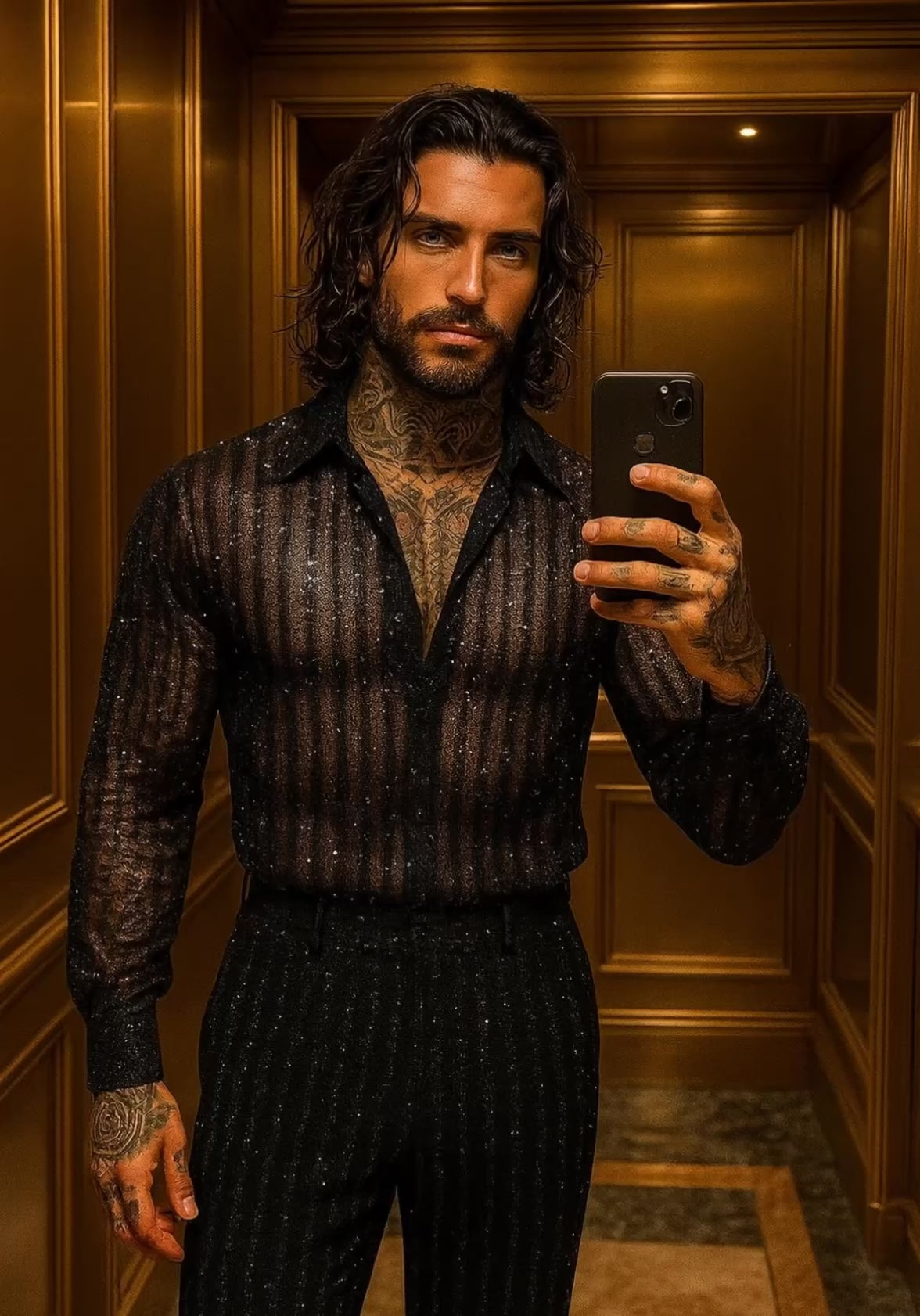 Experience true sophistication with this luxury men’s outfit set, crafted from high-quality French lace fabric richly adorned with sequins and hand-applied beads. Designed for men with a taste for exclusivity, this two-piece ensemble features a refined lace shirt and matching trousers, blending tradition, craftsmanship, and modern elegance.