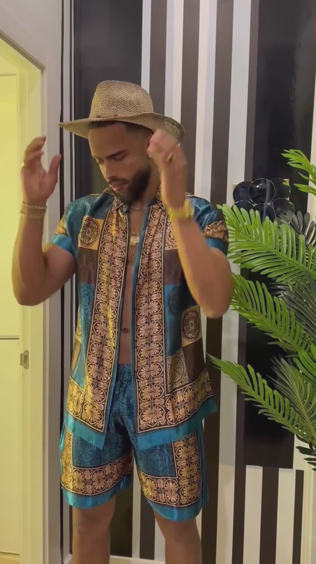 Luxury Boho Silk Shirt Set - Festival Outfit, Handmade Men's Fashion