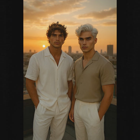 The natural cotton fabric ensures a soft, lightweight, and skin-friendly feel, keeping you comfortable in warm weather while maintaining a polished look. The short sleeve shirt adds a relaxed touch, while the tailored pants balance the set with a refined silhouette.