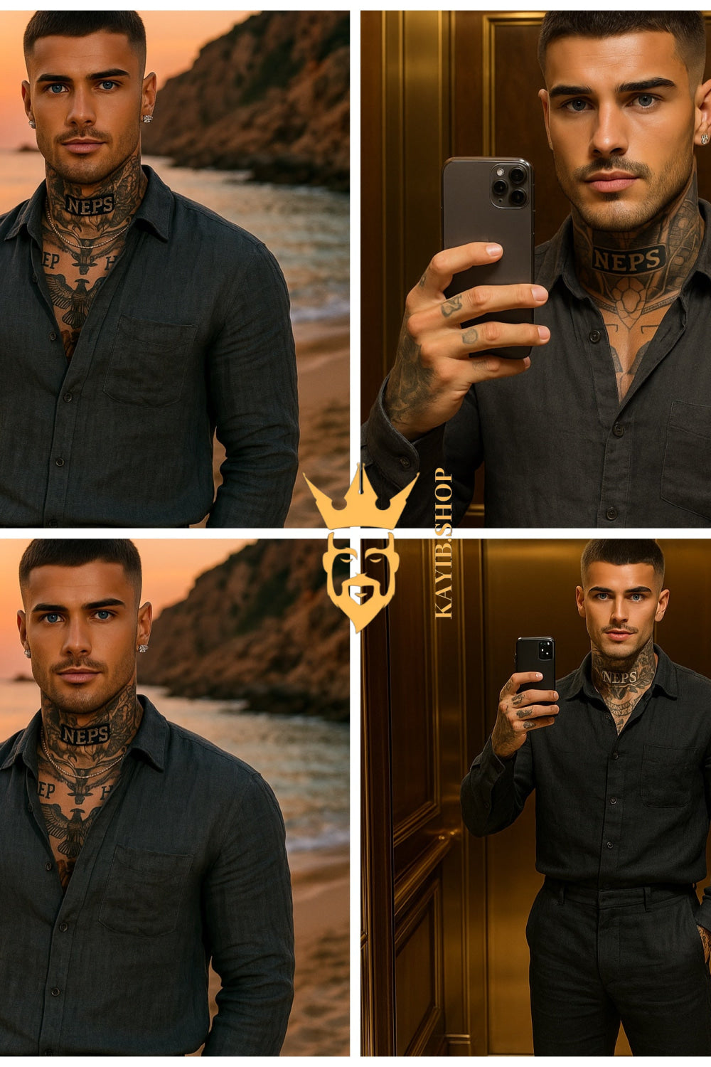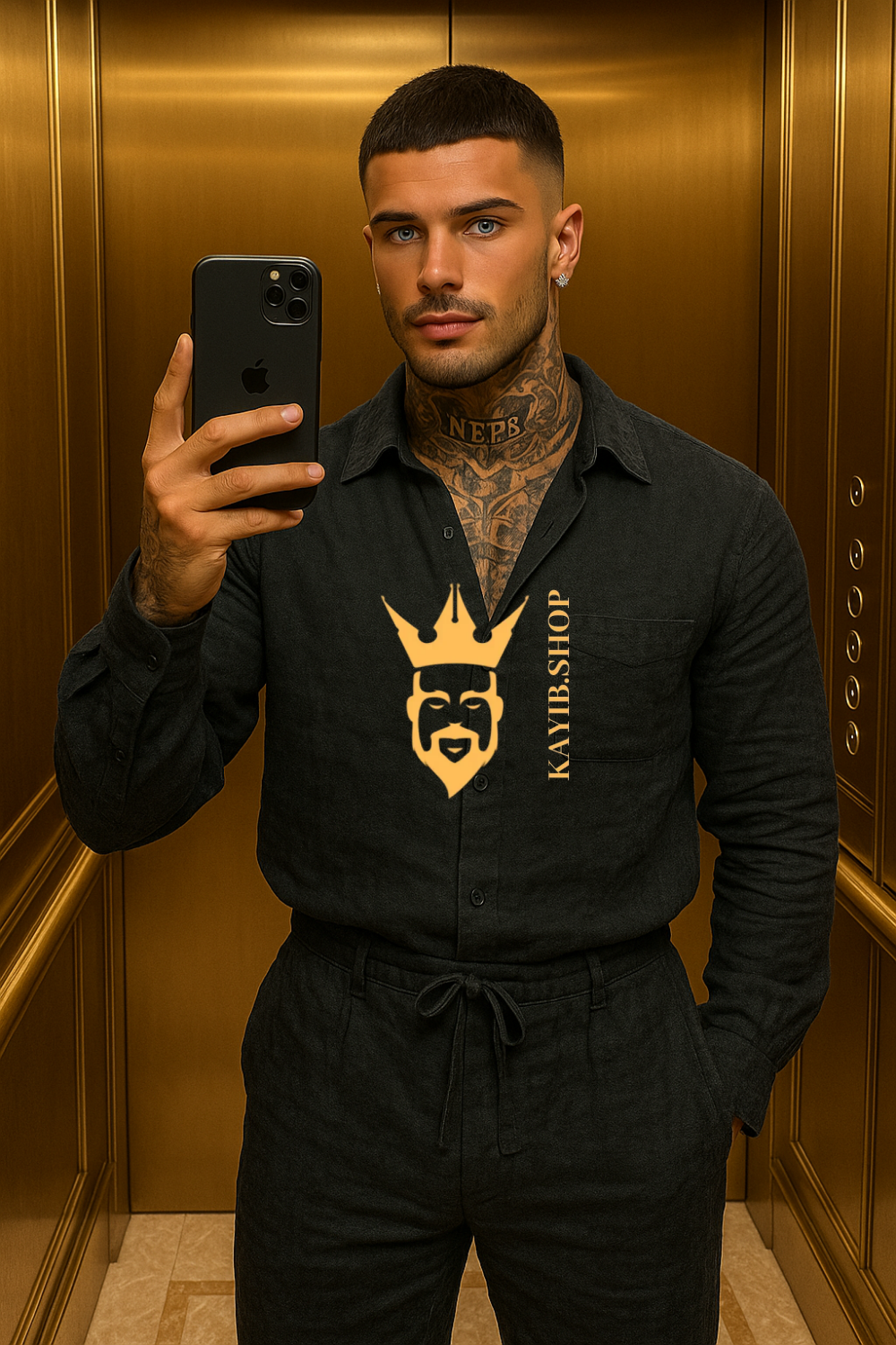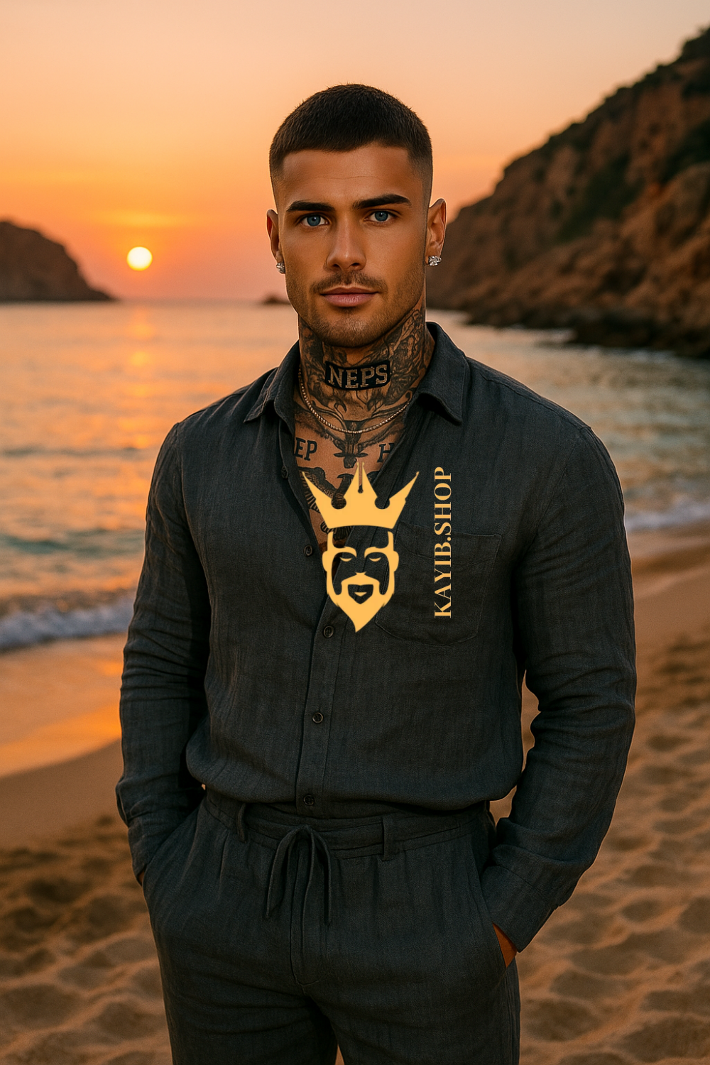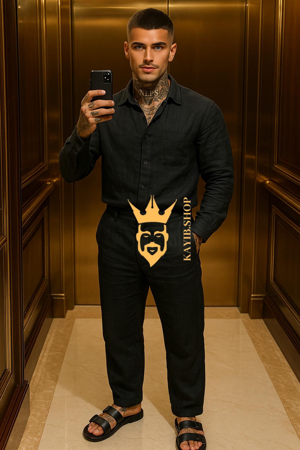 Men’s Luxury Pure linen Outfit Set – Long Sleeve Shirt & Pants in 100% linen