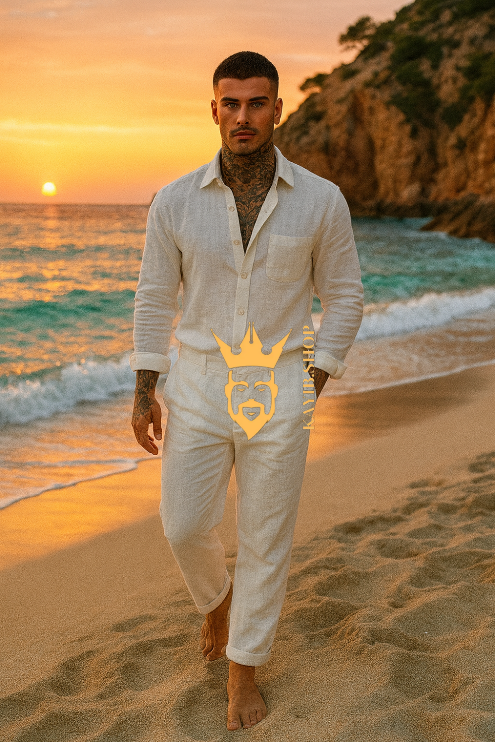 Men’s Luxury Pure Wool Outfit Set – Long Sleeve Shirt & Pants in 100% linen