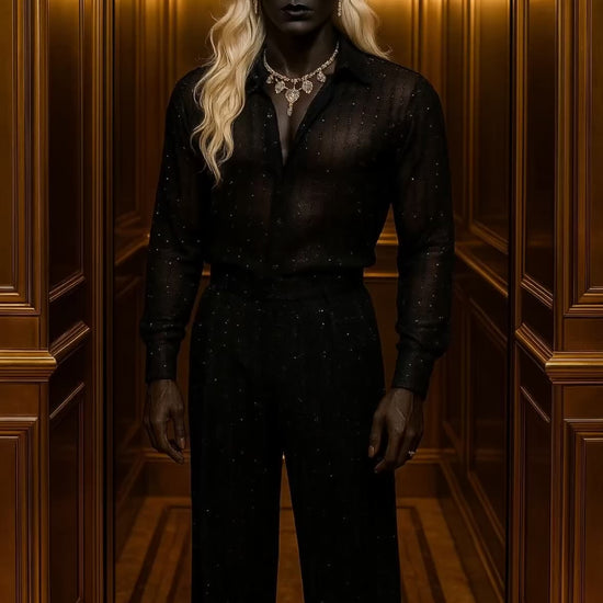 Experience true sophistication with this luxury men’s outfit set, crafted from high-quality French lace fabric richly adorned with sequins and hand-applied beads. Designed for men with a taste for exclusivity, this two-piece ensemble features a refined lace shirt and matching trousers, blending tradition, craftsmanship, and modern elegance.